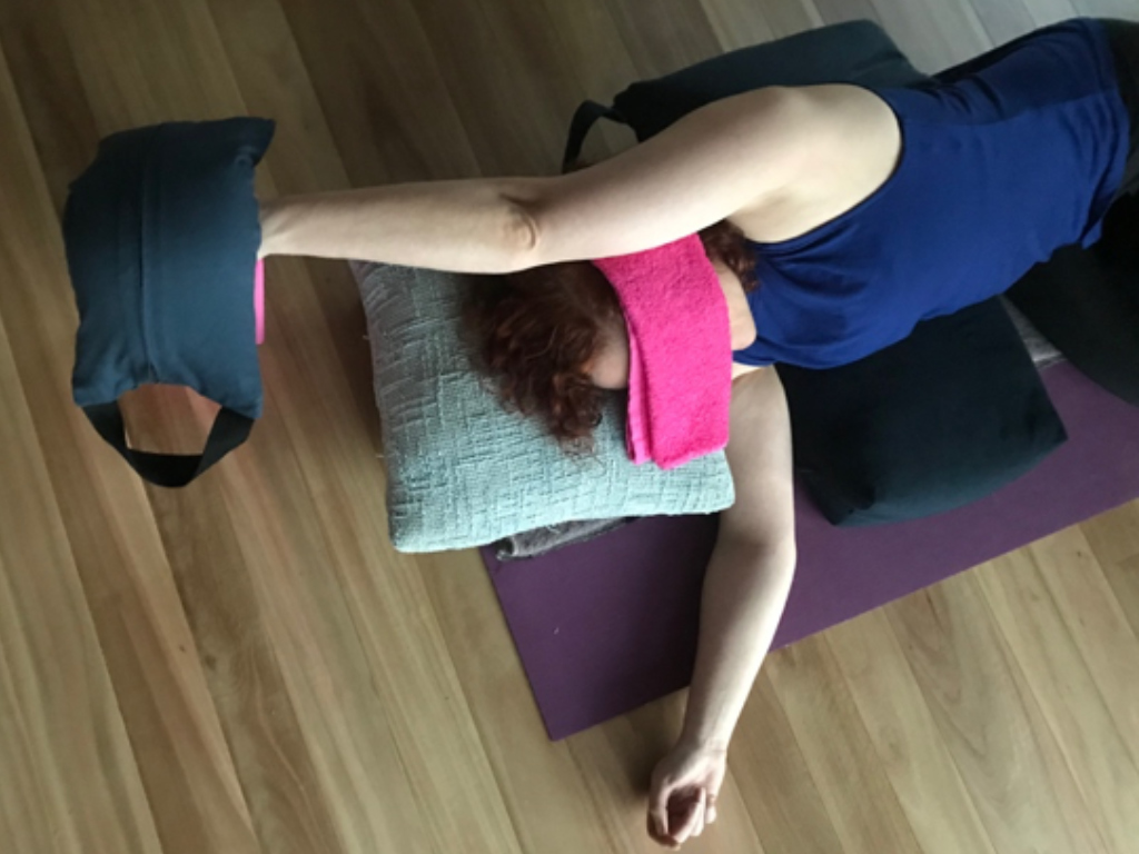 Restorative is a truly quiet yoga, much like meditation on bolsters. It allows the body to open gently.